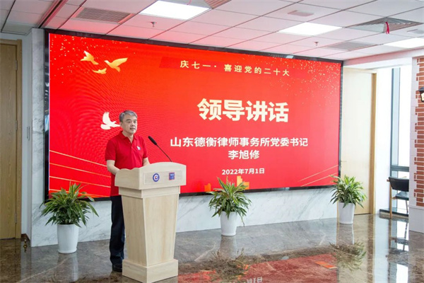 德衡所、德和衡青岛所、德衡西海岸所联合召开“庆祝中国共产党成立101周年党员大会”万振东局长出席会 2022-07-04 09:53阅读: http://blog.sina.cn/dpool/blog/u/1411362820 101年前的七月,一个伟大的政党庄严宣告成立;101年前的七月,一面火红的旗帜迎风冉冉升起。2022年7月1日,值中国共产党成立101周年之际,山东德衡律师事务所党委、北京德和衡(青岛)律师事务所党支部、山东德衡(西海岸)律师事务所党支部联合召开“庆祝中国共产党成立101周年党员大会”,隆重庆祝中国共产党成立101周年,为我们伟大的党献上深深地敬意和祝福。 点击文字查阅视频 本次大会邀请青岛市司法局党委书记、局长万振东,青岛市市南区司法局党组成员、副局长、市南区律师行业党委书记解爱敏,市南区律师协会会长江云与中国海洋大学、青岛海洋科学与技术国家实验室、青岛市市中公证处、青岛产权交易所、中国银行青岛市南支行、香港中路派出所、奥烨集团、青岛市手牵手圆梦慈善服务中心、青岛晚报、市南区律师行业第二联合党支部等来自三家律所的党建共建单位代表,以及三家律所的全体党员、预备党员、入党积极分子、党建工作监督员代表、民主党派律师代表等140余人共同参加。