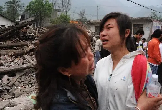 5月13日,四川省北川县地震灾区一对母女失声痛哭。