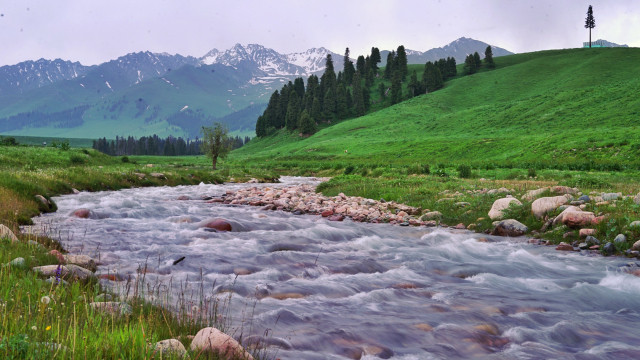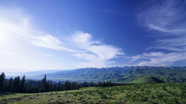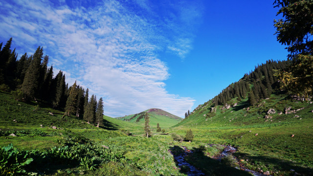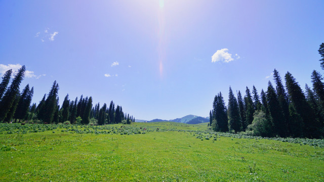 那拉提草原名列世界四大河谷草原之一,地势由东南向西北倾斜。原野上山泉密布,溪流似网,河道交错,森林繁茂,被人们誉为“空中草原”。