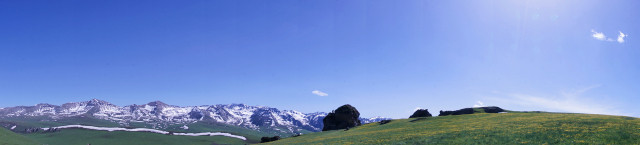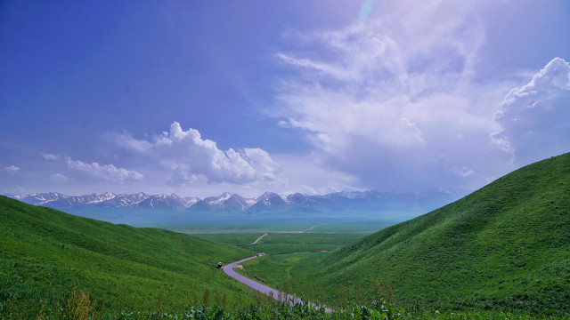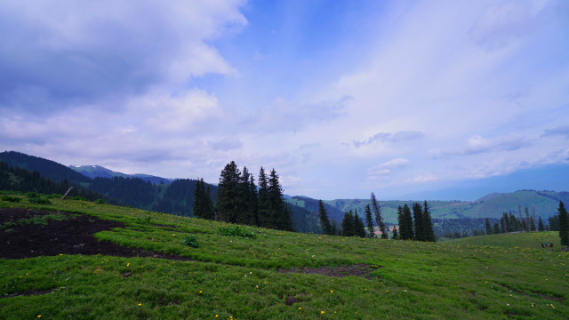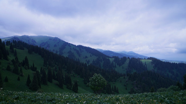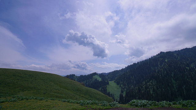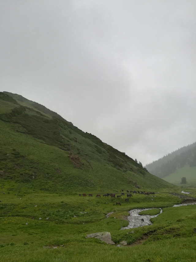 返程有看到塔吾萨尼,哈萨克语,意为“美丽的山沟”。我们可以看到白雪皑皑的山峰,茂密的森林,碧绿的山丘和平坦的草甸完美的结合在一起,可谓是一山四景,景景不同。