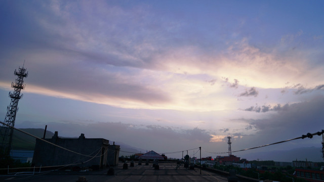 那拉提机场非常迷你(手机随拍),到达是已经是傍晚,但是新疆是有时差的,这里实际天黑大概是北京时间22:30左右,所以别看天亮,那会已经很晚了。