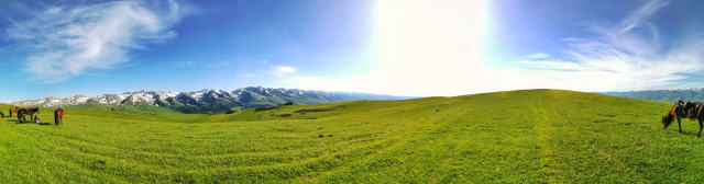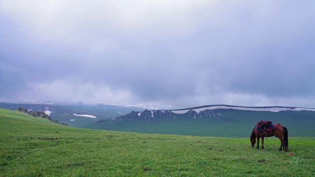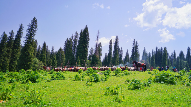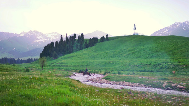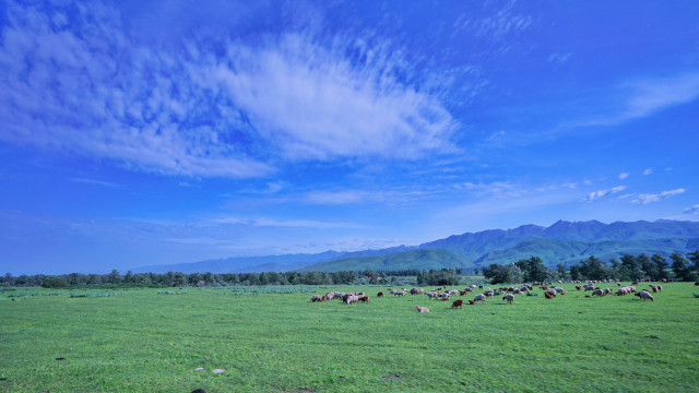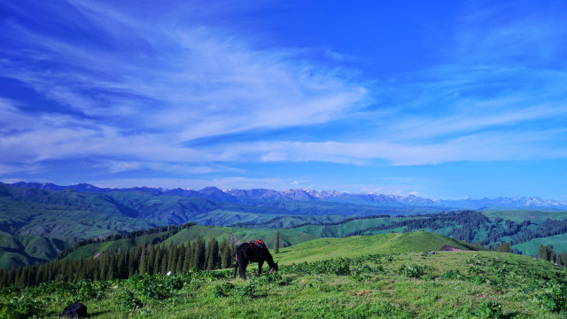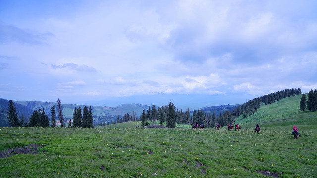 与瑞士山地齐名的那拉提草原,是世界上著名的四大河谷草原之一,又名巩乃斯草原,突厥语意为“白阳坡”,面积710多万公顷。按植被类型可分为高寒草场、草甸草原、低湿地草甸草场、沼泽草场等七大类草场。远远望去,白云上是终年白雪的喀班巴依主峰,白云下是奔腾呼啸的巩乃斯河,而浮现在白云中的就是溪涧交错,云杉耸立,碧草茵茵的“空中草原”——恰普河夏季牧场。