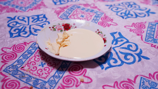 牧民请我们进去吃个酸奶疙瘩,喝杯奶茶。