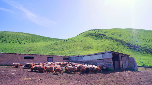 羊太可爱啦,蹦蹦跳跳,还听话,吃吃喝喝,慢慢爬到它们的新家。偶尔还有只小牛进来抢个镜。