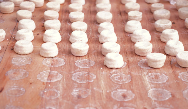 酸奶疙瘩,硬,略点咸味,沾奶油吃。