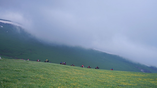 高山草原观光区(空中草原)内,行驶路线为:游牧人家——雪莲谷(全长5公里)