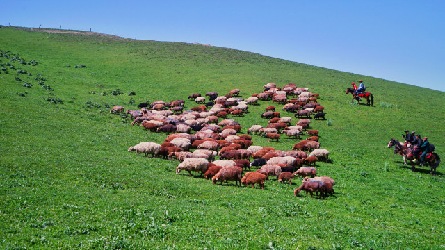 随着季节的变化而转移草场放牧,称之为转场。在新疆广大的草原和高山牧场,由于草场随山地海拔高度不同而具有分带性,牧民们世世代代形成了不同季节利用不同高度草场的迁徙游牧方式。转场时,牧民们携子女及亲属,组成马队,带着帐篷、生活用品,赶着畜群一起大迁移,逐水草辗转而居。