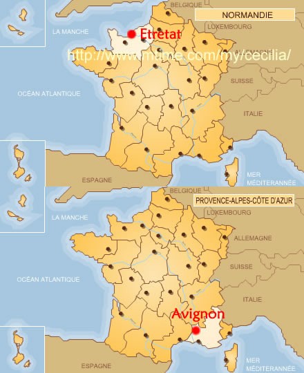 更准确地说,是法国诺曼底省的海滨小城埃特尔塔Etretat那著名的海岸。这也是剧中最重要的情节的发生地之一。剧中始终未提诺曼底,默认故事发生地在雅维农,其实两地一东一西相距情况请看下图。