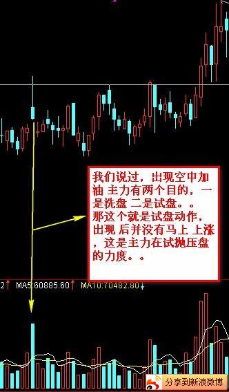 出现这种底位或拉升途中的空中加油形态,,一般都是主力拉升前的强洗盘动作,如果在底部出现那就更完美了。主力早盘集合竞价大幅进货高开,开盘后,从高位,顺势向下打压筹码,主力这么做有两个目的,一是洗盘,二是试盘。当然,它有洗盘和试盘两个目的,那么,出现空中加油后,,有的股票并不会马上大涨,这一般是主力在试盘,有的股票出现空中加油后,并立即拉升,这便是主力的拉升前的强洗盘动作。。。需要自己去分析判断。。。