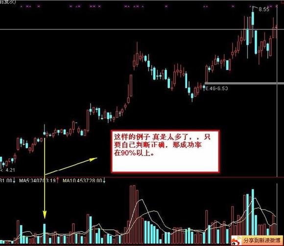 五、量能必须是前期量能温和后,突然某天放巨阴量,必且,放出巨阴量后的第一天,量能重回前期温和放量。。