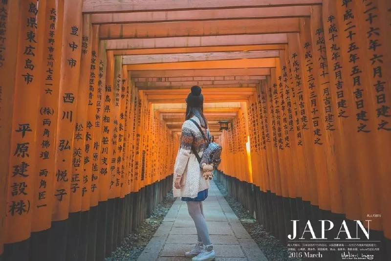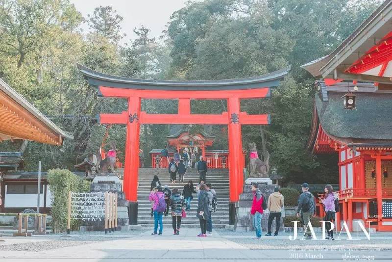第一次看到伏见稻荷大社的照片,不知是太喜欢热烈的红色,还是好感于线条规律排成的空间,还是别有意义的密密麻麻的鸟居,总之对那种喜欢与向往一见钟情,而这里也成为了日本国内吸引外国游客第一的景点