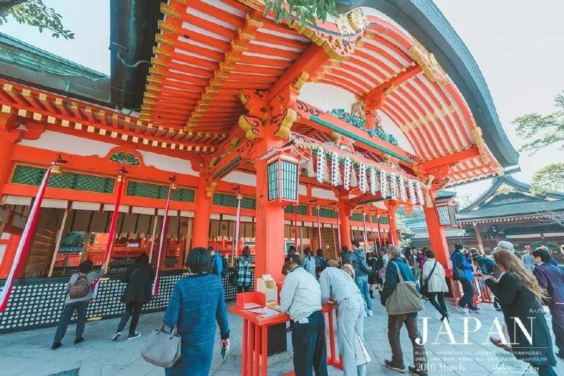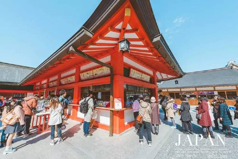这里也是遍布日本全国3万余座稻荷神社的总社本宫,也是京都市内最古老的神社之一。每到正月或每月1日赶集的日子,这里就热闹非凡,本殿与鸟居都是红色的,代表万物丰收秋天的色彩。