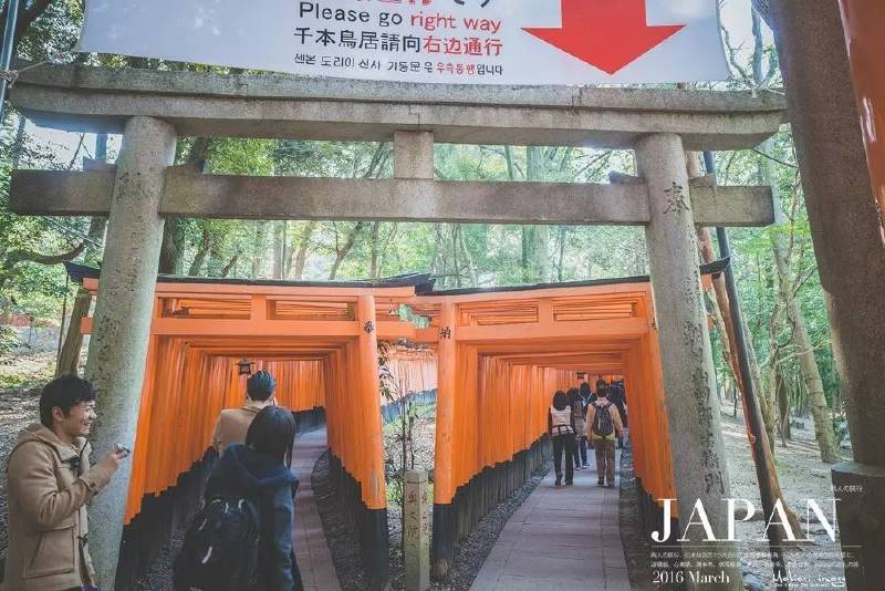 而日本的财神庙~伏见稻荷大社,如今已经连续几年成为了外国游客游玩日本排名第一的景点,因此必须要赶在9点前旅行团大部队抵达之前去拍照。