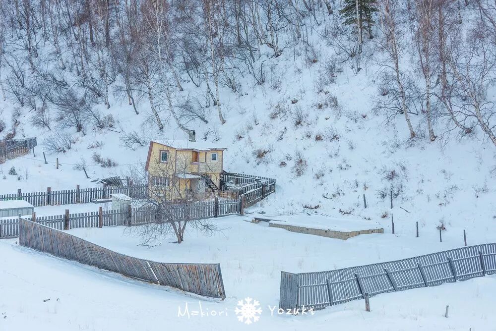 这里的人们,生活节奏非常缓慢,山谷间的小屋错落有致的一字排开,均匀分布在了路两边。家家户户的屋檐上都是一层冬天的色彩,没有人,只有不时的传来几声狗吠。