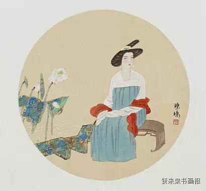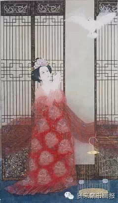 王珠珠的画,美。不但是画面,更因了那画里面的文气与她所想传递的美与思。她的文字与其人其画交相辉映,仿若一首诗。生命,可以是一首诗,最后也能成诗。未见之前,读王珠珠的文和她的画,画图上虽只是简单的落名款,却分明感觉到她“画里有话”。见了之后,觉得那仕女有她的影子。她读书多,声温婉,言谈举止很有传统文化里的士人风范,真正是人如其画、画如其人。王珠珠的工笔画多为大部头的历史题材创作,画面设色饱满、稳重,决不会给人艳俗之感。人物构图多为满构图,不留空间,但绝不会使观者感到压抑或局促不安。你看那飘飘的纱、浅浅的顾盼、冷冷的眸,不焦躁,不刻意,款款婷婷,仿若能让人闻到香味。不管画面丰富还是简单,动与静、疏与密的协调都没有违和感,唯美的只是要让人心动。