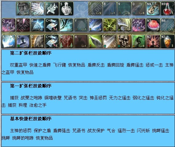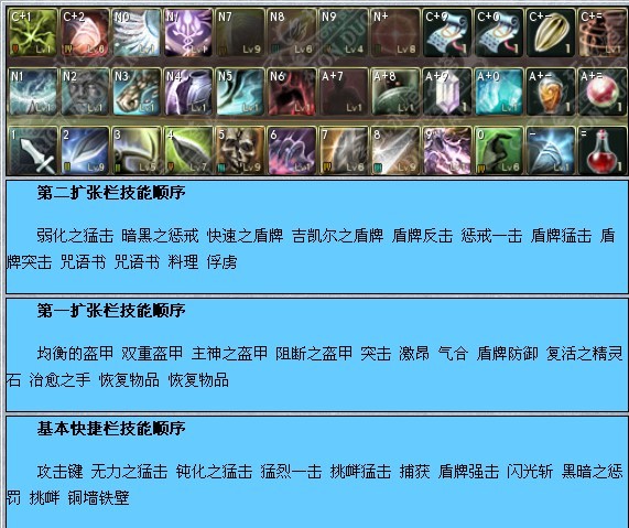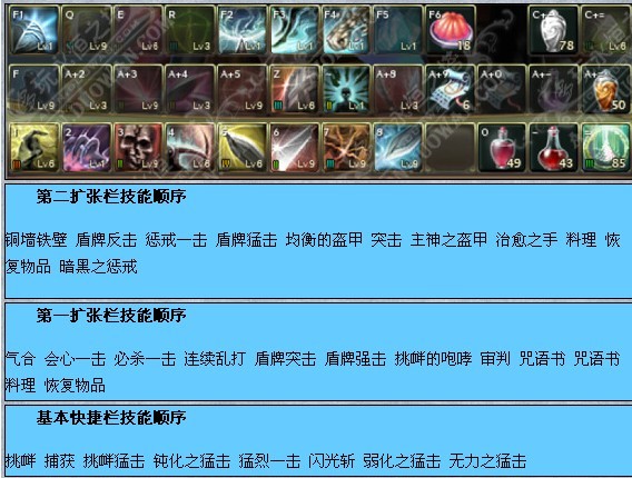 另外右侧扩张栏里放秘药或咒语书。快速使用连续技和进行反击的技能位