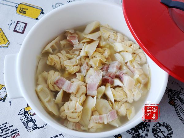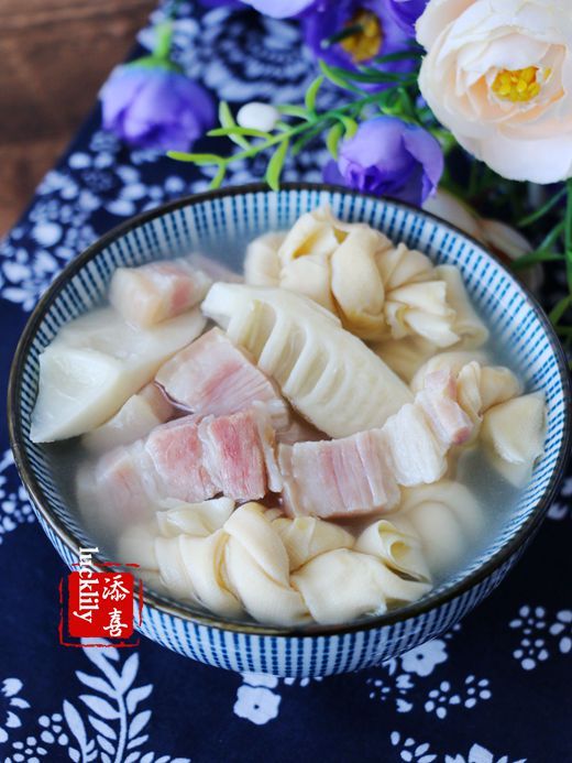 【祺宝家厨】吃春天,春菜——腌笃鲜的做法 2017-03-20 10:55阅读: http://blog.sina.cn/dpool/blog/u/1613209864 美食是一份情怀,沉甸着关于故乡、童年、母亲、祖母的很多的记忆。我们终将老去,下一代的世界会更精彩,充满诱惑,不经意间我们亦象一代又一代母辈们,默默的为孩子们种上一份思家的“瘾',或许将来我们并不希望成为孩子志在四方时的牵绊,但总有这样一份私心,想用这份家的味道——勾引你回来! 腌笃鲜,属于江南吴越特色菜肴,是杭帮菜中具有代表性的菜色之一。“腌”,就是指腌制过的咸肉;“鲜”,就是新鲜的配菜类(鲜肉,鲜笋等);“笃”,就是用小火焖的意思。