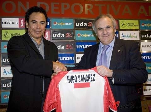 乌戈·桑切斯(图左)在'亲近足球,远离饥饿'的理想驱使下,桑切斯想通过踢足球摆脱贫困。经过4年勤奋的苦练,他的双脚把足球玩得随心所欲,盘带、传切和射门样样精通。他的球技感动了当时他所在的乌南(UNAM)俱乐部的教练、南斯拉夫人米卢蒂诺维奇。没用多久,桑切斯就接到了墨西哥国家队的任命状,这一变化对桑切斯的命运带来了极其深远的影响。