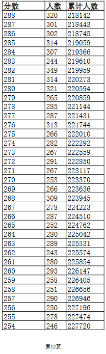 2022年宁夏高考成绩“一分一段”统计表出炉