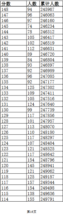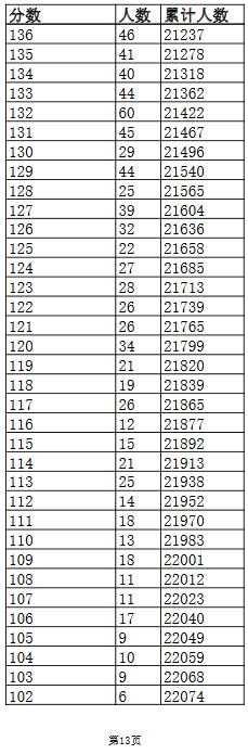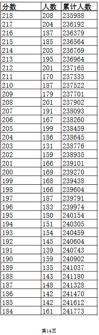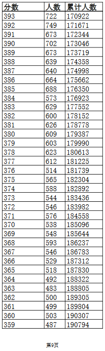 安徽省2022高考招生统一考试考生成绩分档表(含加分)