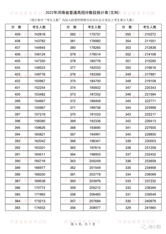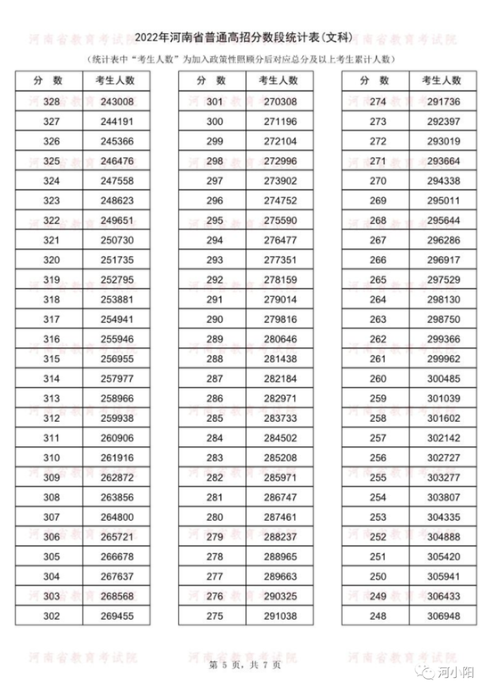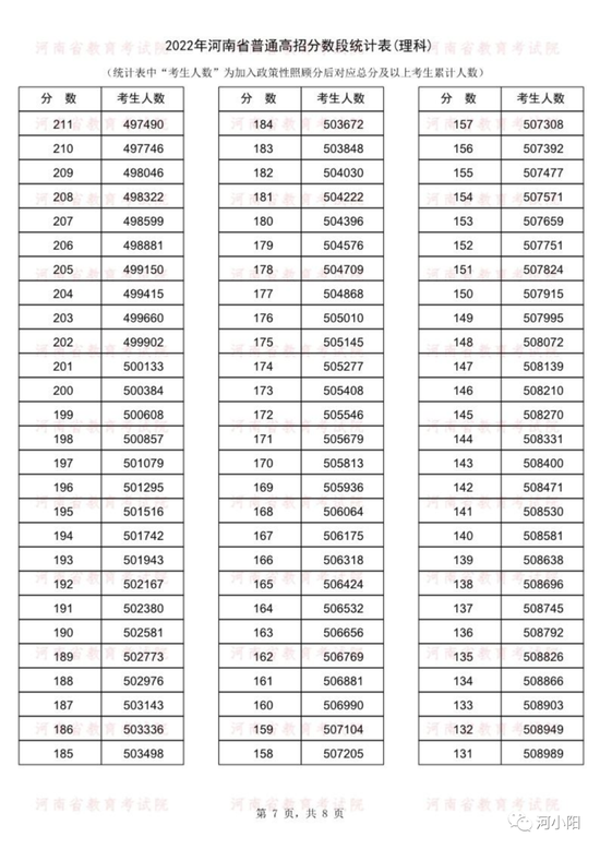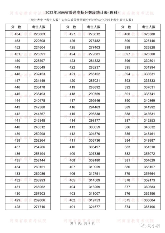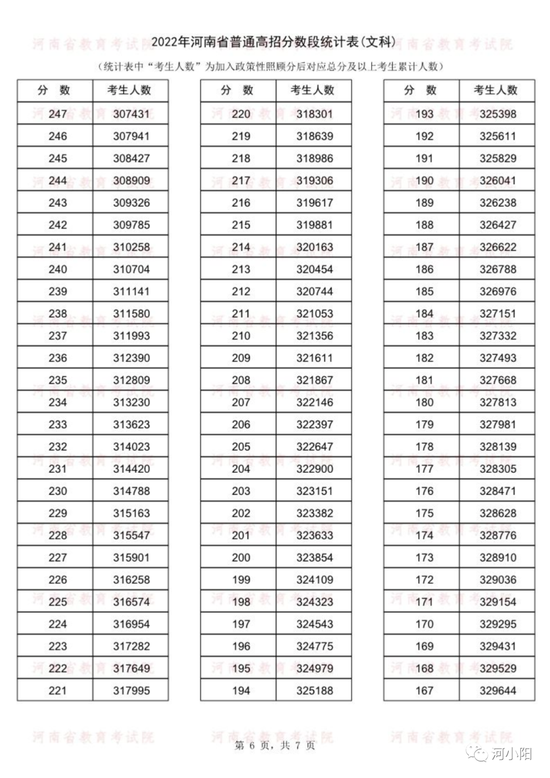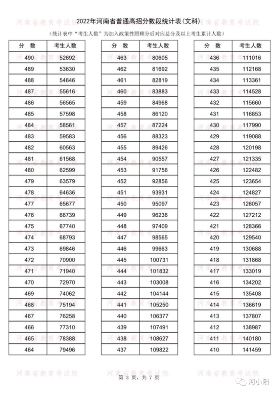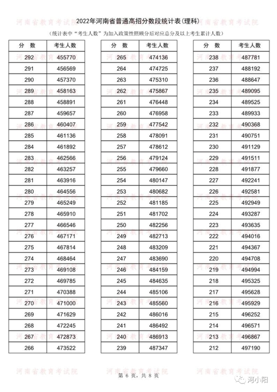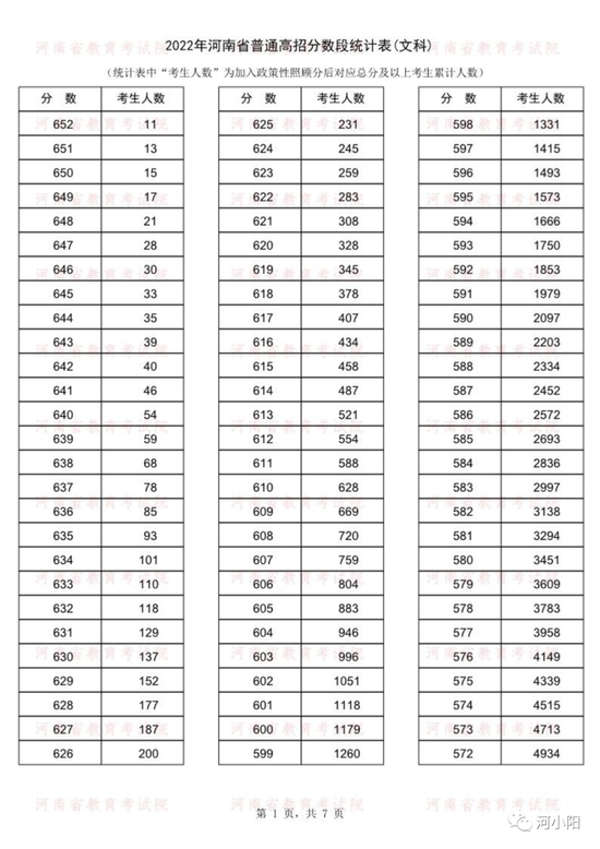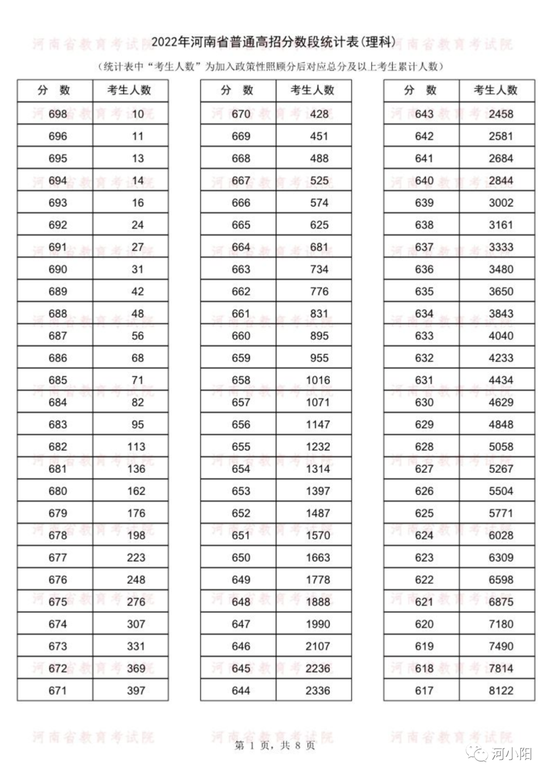 河南2022年高考一分一段统计表公布