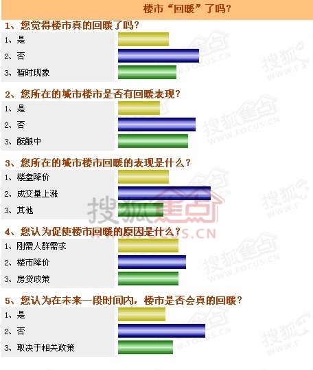 发起了“楼市回暖,真相还是炒作”的投票活动,在全国近百个城市发动上万网友对“楼市回暖”这一话题进行讨论。就楼市是否回暖、回暖原因、表现以及未来走势等方面进行了重点调查。