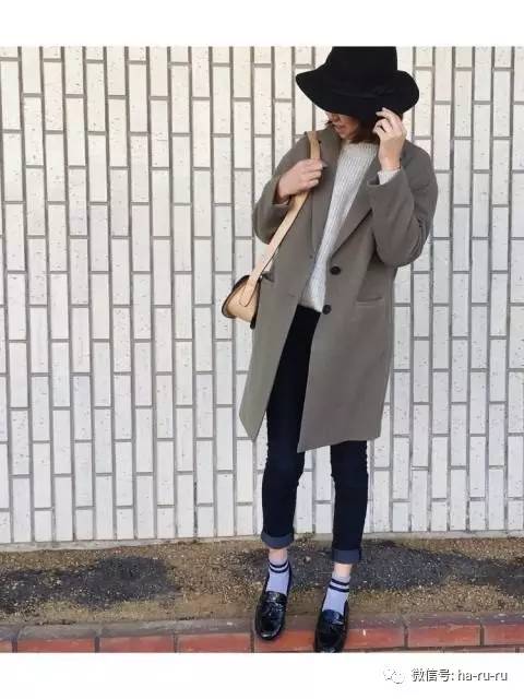 棕色,搭配藏青色的风衣,整体感觉温暖但不厚重。从高领到阔腿裤,一直都在遮掩身长比例的这一身,非常适合矮个子女生。