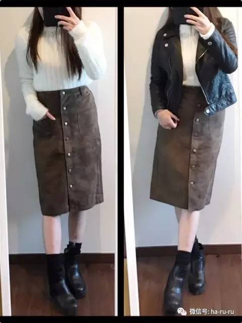 搭配|针织衫×裙子×丝袜×靴子