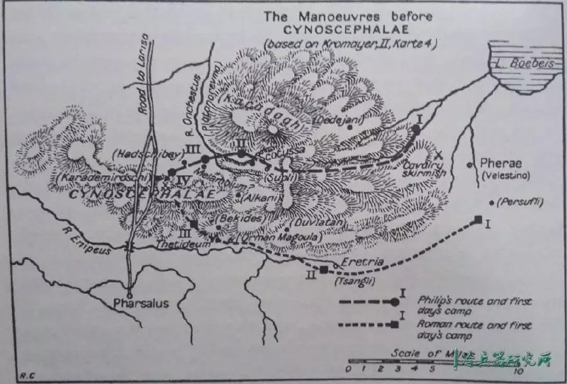 Aous),成功从南部路径突破色萨利。腓力五世在失去地利的同时,也失去了依靠游击战耗尽罗马军队补给的希望。进入色萨利的弗拉米尼乌斯一边与马其顿军队周旋,一边设法让几乎全部希腊城市加入反马其顿的阵营。因此,面临财政衰竭的腓力五世,唯一的选择就是在战场上决定性地摧毁弗拉米尼