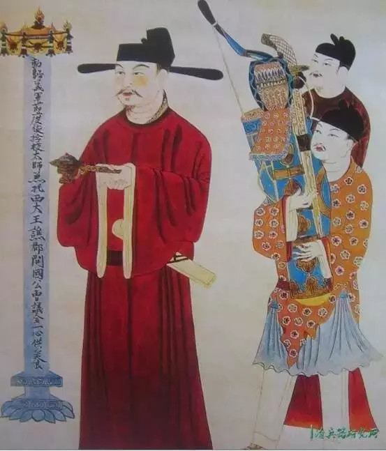 ▲还有一种推测,就是说唐朝吴钩是一种直剑,这个就更加离谱,纵然是直剑,也要有让人联想“钩”的部位,图中侍从所捧武器中一件弯把直刀,如果直刀说有点靠边,也可能是这样的