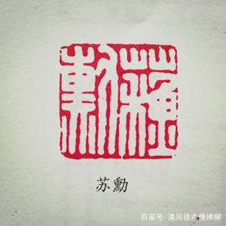 布局规整充实,这不光是满白文印的特点,也是汉印的特点,所以印面上的各个单字都能相对独立稳定的存在,当两个字组合成一方印之时,左右各占二分之一。另外,在布局中充分应用缪篆书体允许屈曲盘绕的特性,将文字中原来可能出现空挡的地方,把某些笔画屈曲折转,使之充实起来。