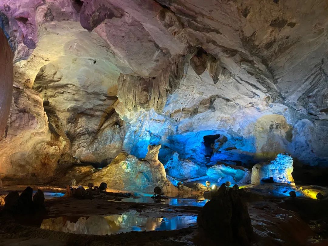 几百年前,徐霞客借了一澡盆游进双龙内洞,便有了这种世界独有的游览方式,穿过极扁的孔隙,似乎稍微一抬头,就会碰着鼻尖。