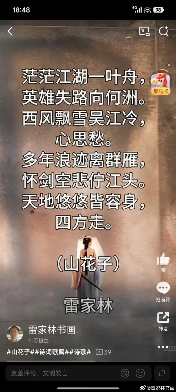 当代诗坛的定位:雷家林此类创作被归入“中华诗词之美”话题,体现古典意象在现代语境下的再生。