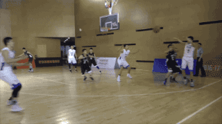 下一回合,中关村无功而返,四中后卫邵思铭推进快攻,跳起上篮后左手脑后妙传给陆维琛,再拿两分。