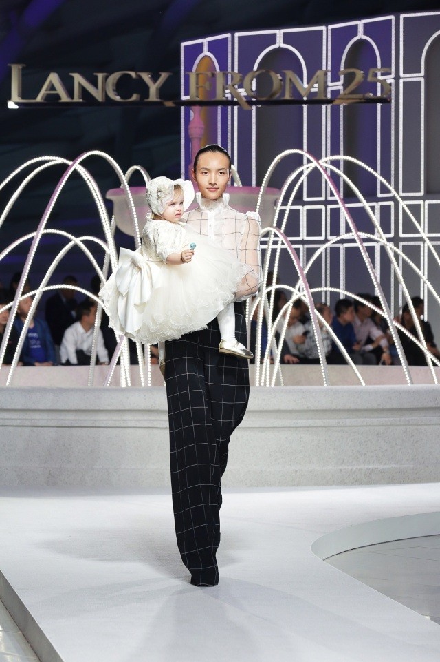 此次一同亮相的还有朗姿旗下阿卡邦高端婴童品牌ETTOI,服饰精致华美,面料细节严谨考究,超模王路平怀抱小baby登场,这是她第一次和宝宝走秀,画面犹如一件精致的艺术品。