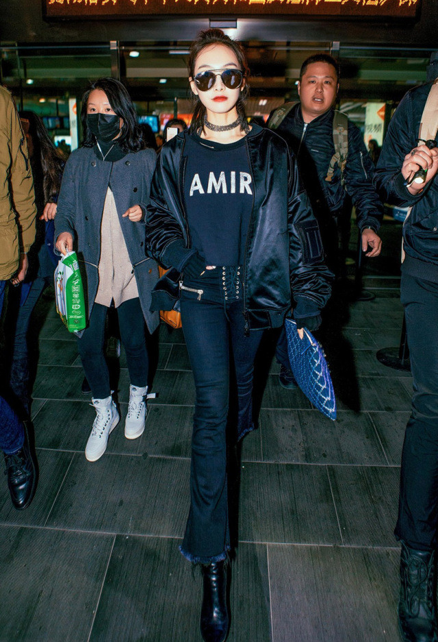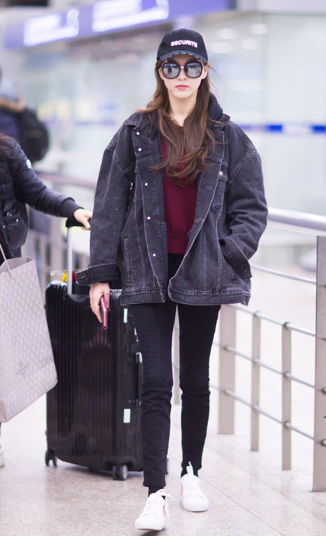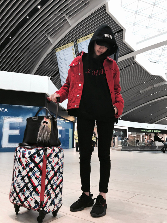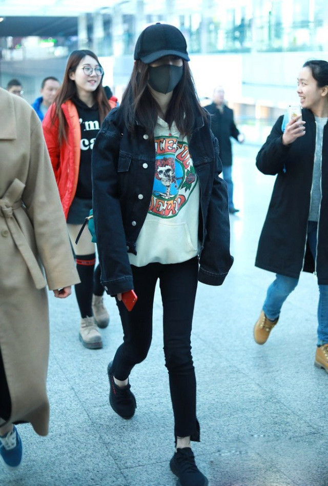 杨幂的最新机场私服选择了牛仔短夹克搭印花卫衣,虽然“全副武装”,人群中仍然显眼,而且最近Yeezy鞋最近出镜率也蛮高的。
