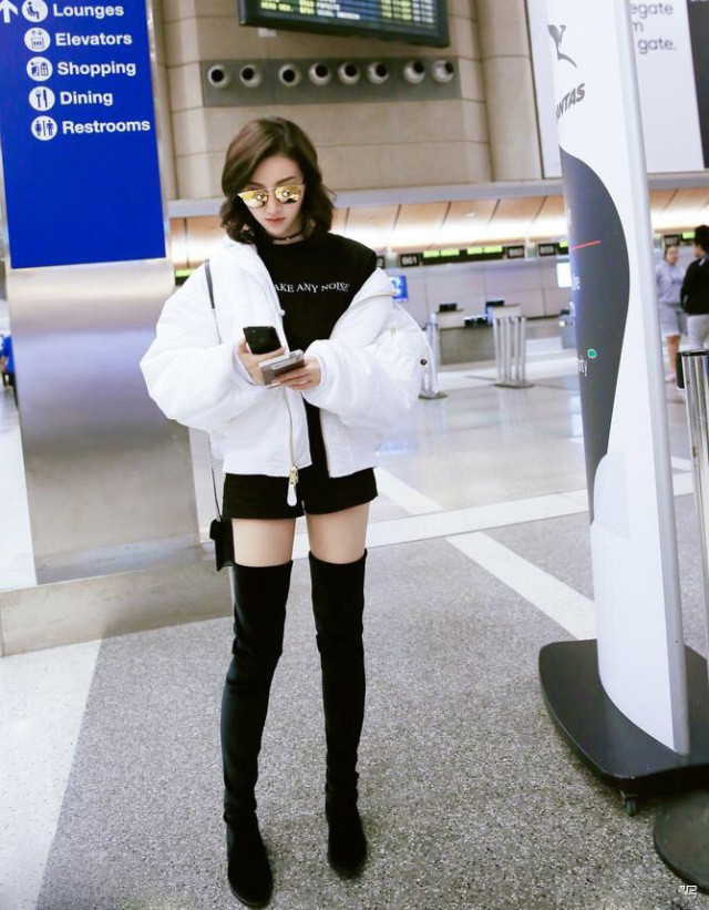 景甜的外套与关晓彤撞衫,卫衣过膝靴的组合也不是第一次见了,有一双好腿就咋折腾都美(摊手.gif)。