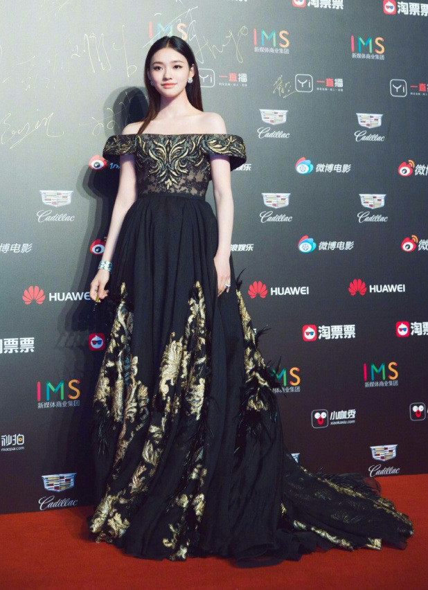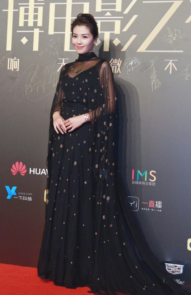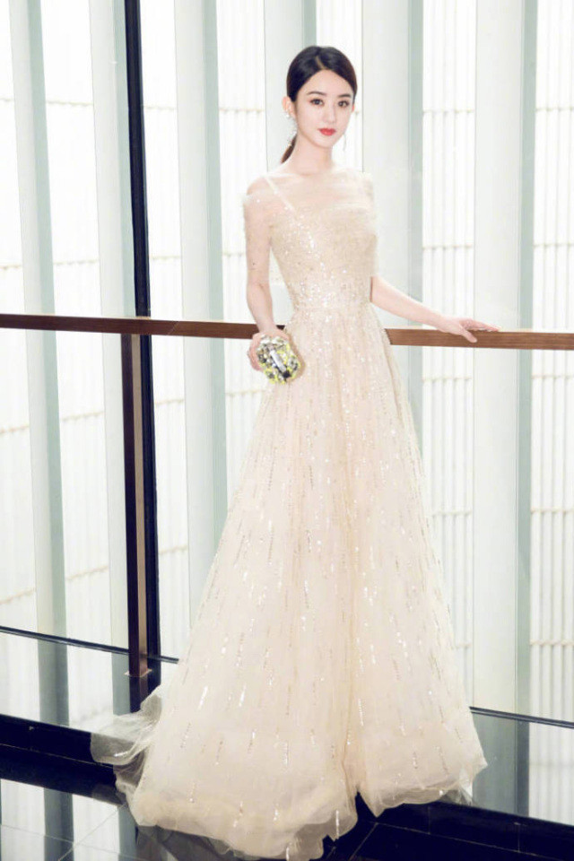 丽颖的红毯走的仙女系风格,这次红毯选的也是蕾丝吊带纱裙,外面用一款一字保肩纱装饰显得十分俏皮。