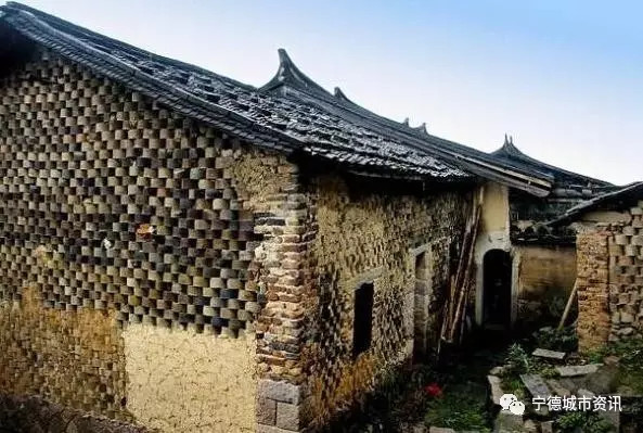 弃了又可惜,烧过的胚子又不好重新利用,于是村民就地取材用来做墙体材料。因为高温锻造,质地非常坚固,而且有防火功能,此外,因为碗盒中空,墙体由里外两层碗盒砌成,隔热、隔音效果好,有冬暖夏凉的效果。