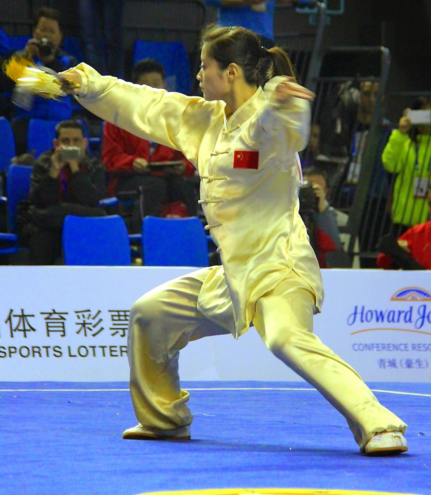 首届世界太极拳锦标赛:中国队孙瑛,女子A组陈式太极剑 2015-02-18 19:27阅读: http://blog.sina.cn/dpool/blog/u/1760911327 今天美国中文日报居然有详细的 “羊年春晚节目表” 刊登。。。。 节目第18项 “ 武术《江山如画》表演者:张震,吴京 ,冉千鑫,孙瑛,黄雪晴,梁壁荧,乔良帅 及河南塔沟少林武术学校。” 表演者帅哥:“ 乔良帅 ”,2012年随北京武术队在美国两星期表演,宣传海报主角,本博客早有介绍乔的博文,不再重复 。 表演者美女:“ 冉千鑫,孙瑛 ” 正巧是我要介绍 2014年第一届世界太极拳锦标赛 中国国家队代表其中的二位女主将 。