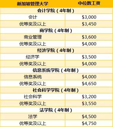 新加坡各院校专业起薪