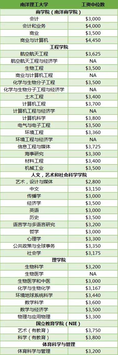 南洋理工起薪最高是商业与计算机,有4450新币;接着