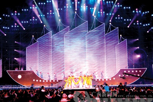 大气磅礴的原创歌曲《防城港是个好地方》再掀高潮,《梦幻北部湾》的启航演出也在漫 天的烟火中落幕。