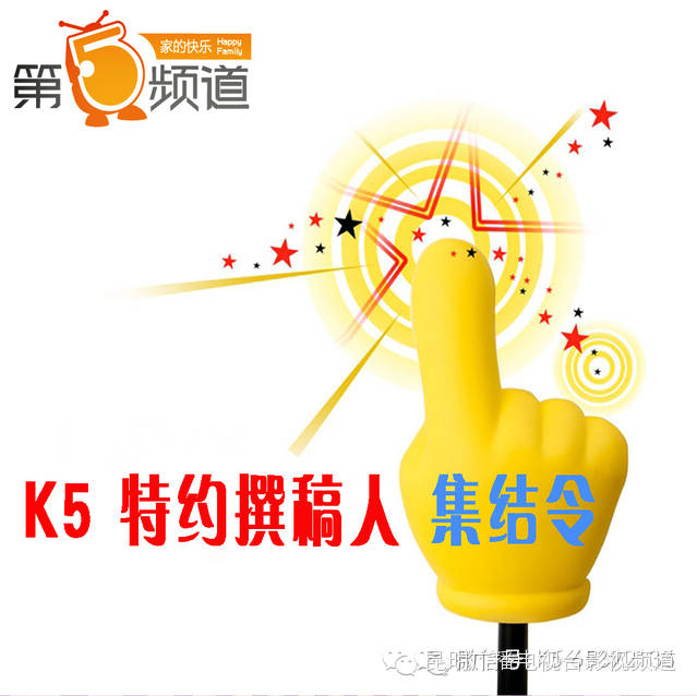 你关注影视娱乐圈吗?你的文笔犀利吗?不要再默默躲在朋友圈里吐槽了!K5影视频道正在招募娱乐新闻特约撰稿人——评说电影电视,盘点娱乐八卦,只要你观点独到、具备娱乐精神,就赶快加入我们吧。K5特约撰稿人,虚位以待、稿费从优。报名电话:13608880005,报名邮箱(kmtv5@sina.com)