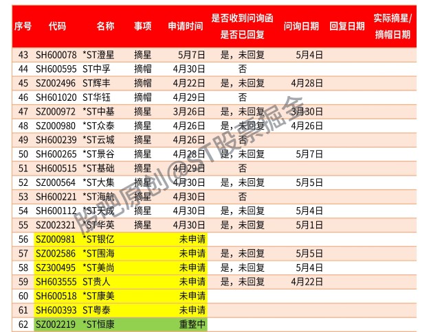 - 还有几只符合摘星摘帽标准却没有向交易所申请的股票