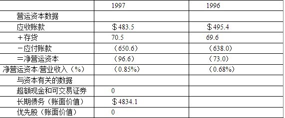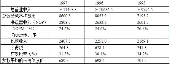 如下表所示,我们用来评估麦当劳公司普通股价值的最终信息来自该公司1997财务年度的现金流量表