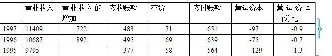 表3 麦当劳公司的营运资本表 (单位:百万)