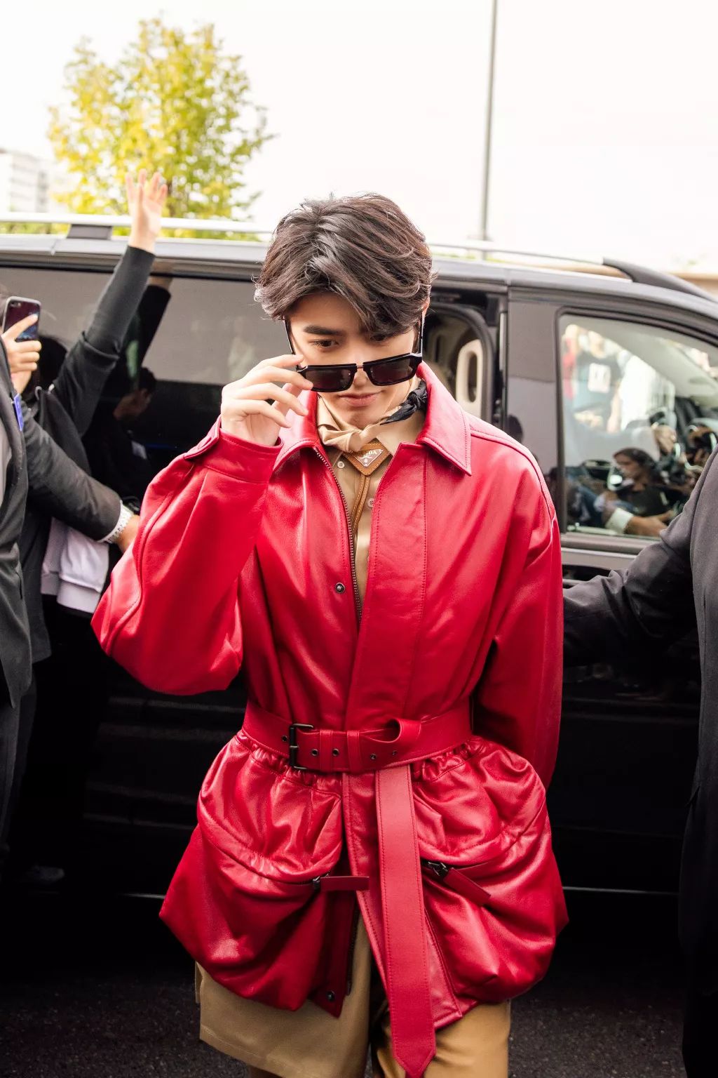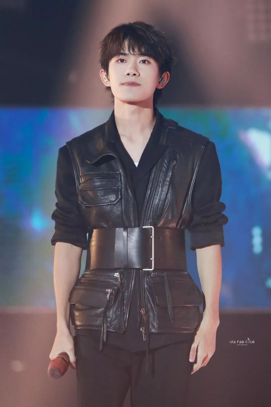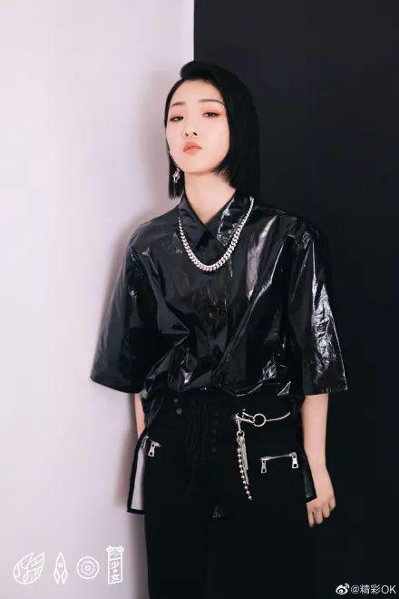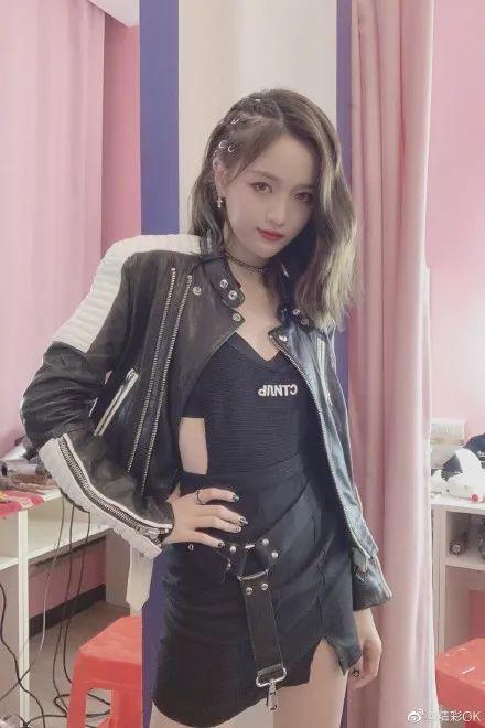 吴宣仪拼接机车皮衣外套炫酷又摩登,yamy的漆皮衬衫衬得她青春又个性。
