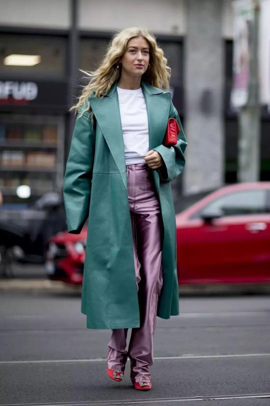 皮革长裤,漆皮长款是皮革裤装的主打场,平滑的纹理和细腻的触感使它,看起来不再只有冷酷和老气。