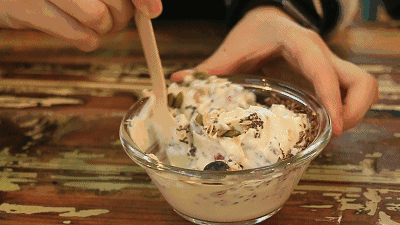 配料:酸奶、开心果、黑巧克力碎、燕麦、葵花籽、蜂蜜
